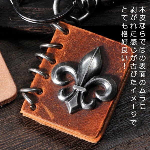 キーホルダー 革 名入れ 5連式BOOK型本革ゆりの紋章キーリング