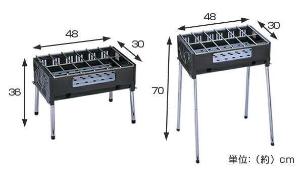 サイズ約 幅48×奥行30×高さ36/70(cm)収納時:約 幅48×奥行30×高さ18.5(cm)内容量材質本体:鉄(メラミン樹脂塗装)鉄板焼器:鉄(板厚1.6mm、ラッカー塗装)バーベキュー網・脚・スタンド・ハンドル:鉄(クロムめっき)目皿:亜鉛めっき銅板生産国中国備考ダッチオーブン耐火重20kg商品区分グリル・コンロ・スモーカーカテゴリから探す●ダッチオーブン用スタンドが付いている、二段階に高さが調整出来るバーベキューコンロです。