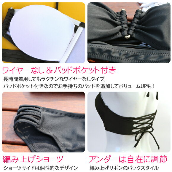 [メール便不可]即納 スリット入り バンドゥビキニ レースアップ 編み上げ ビキニ 2点セット 水着(811)【送料無料※沖縄は追加送料】【水着 レディース セクシー ホルター】