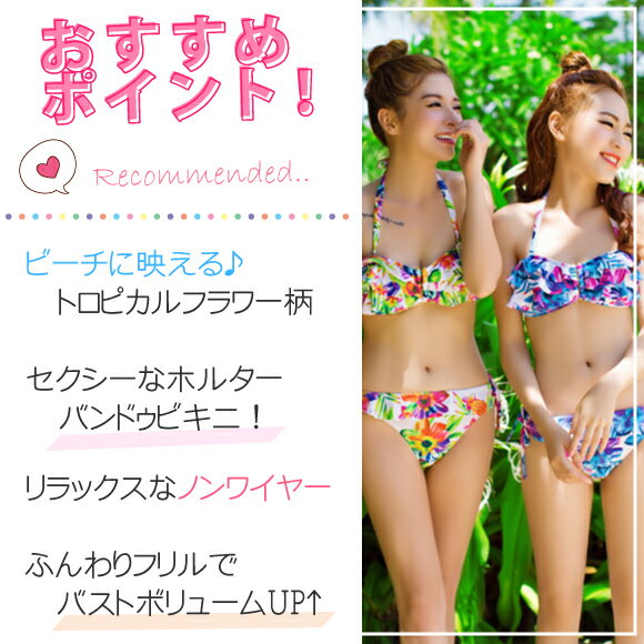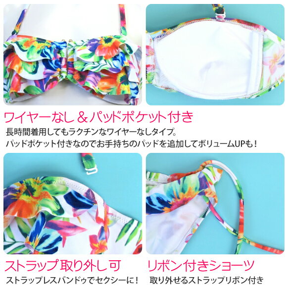 [メール便不可]【送料無料※沖縄は追加送料】トロピカルフラワーバンドゥフリルビキニ2点セット水着(SW6311)【水着 レディース フリル バンドゥ】